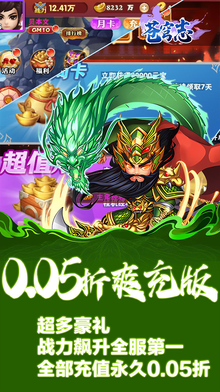 ★首充礼包霸气送彩金神将!次日送龙鳞套装,第三天送极品宝物,超强守护,大杀四方