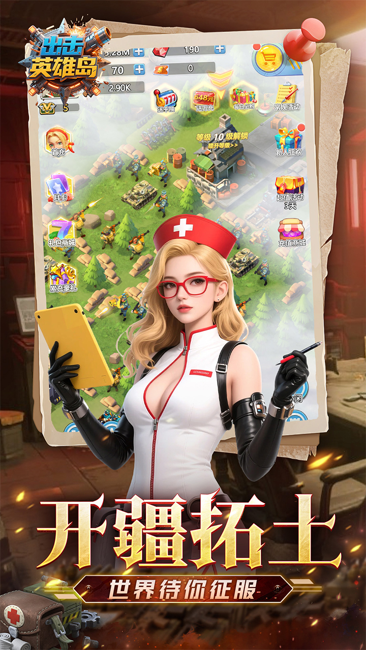 《出击英雄岛》是一款欧美卡通画风搭配战争题材的超休闲策略类手游。游戏集合了塔防、经营、战斗、冒险、合成等休闲操作玩法于一身,沙盘地图、联盟、宏大的世界观设定一应俱全。玩家需要建设一个自己的岛屿,在上面架设军事力量进行守护,运用海陆空三军技能兵种来赢得战斗。通过不断地对军事设备进行合成与强化,向外掠取资源,与其他玩家相遇、对战,帮助联盟筑造更强大的军事领地。游戏主打多样化的玩法,让玩家们在体验的时候,可以感受不同的玩法带来的乐趣。