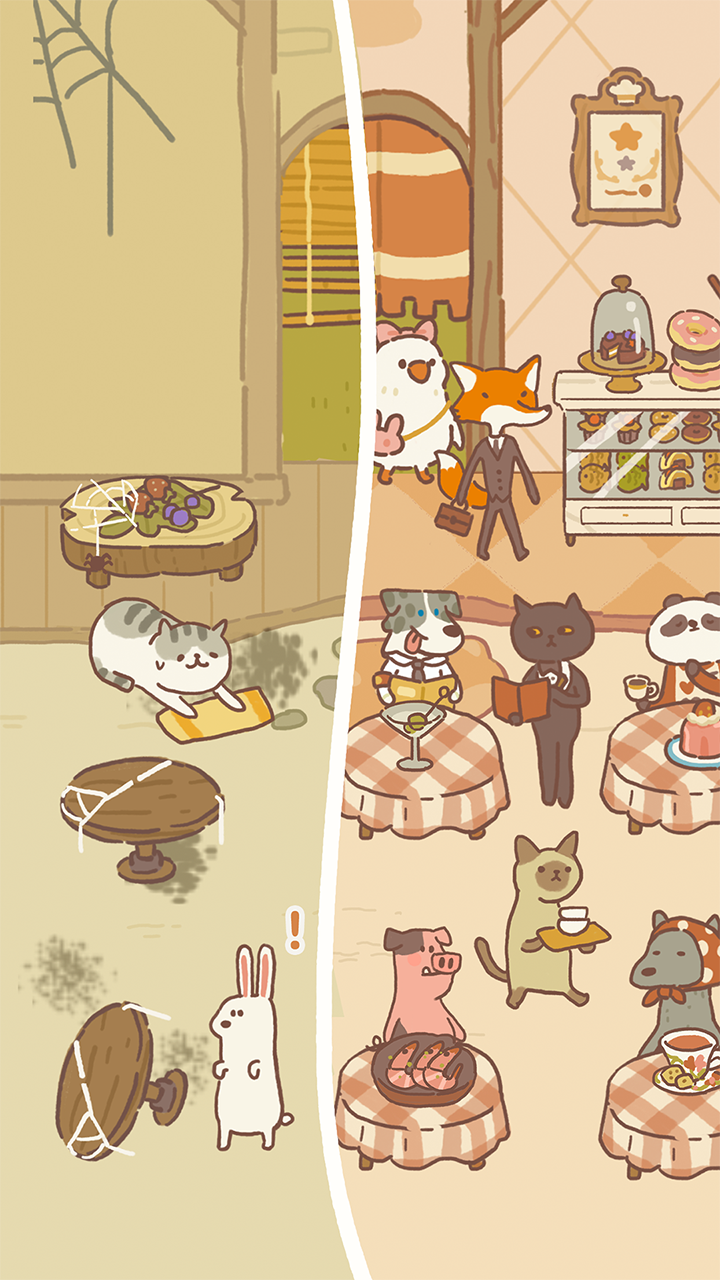 5.手绘画风,Q版萌系动物,配色治愈,轻松愉快的游戏氛围,在动物餐厅放下生活的重担,感受